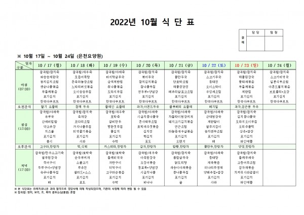 10월 셋째주 식단표 페이지 정보 작성자 은천노인복지회 작성일22-10-13 17:30 조회86,301회 댓글0건 관련링크 이전글 다음글 목록 답변 본문 . 이전글 다음글 목록 답변