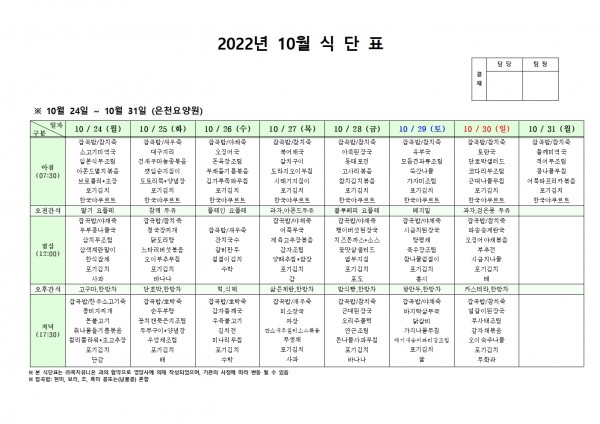 10월 넷째주 식단표 페이지 정보 작성자 은천노인복지회 작성일22-10-20 15:06 조회85,338회 댓글0건 관련링크 이전글 다음글 목록 답변 본문 . 이전글 다음글 목록 답변