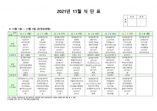 11월 첫째주 식단표 페이지 정보 작성자 은천노인복지회 작성일21-10-28 16:55 조회117,778회 댓글0건 관련링크 이전글 다음글 목록 답변 본문 . 이전글 다음글 목록 답변
