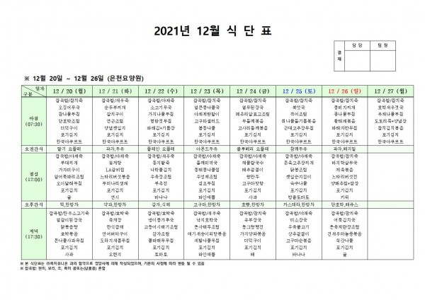 12월 넷째주 식단표 페이지 정보 작성자 은천노인복지회 작성일21-12-16 17:24 조회113,979회 댓글0건 관련링크 이전글 다음글 목록 답변 본문 . 이전글 다음글 목록 답변