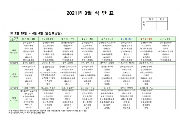 3월 다섯째주 식단표 페이지 정보 작성자 은천노인복지회 작성일21-03-25 17:09 조회133,088회 댓글0건 관련링크 이전글 다음글 목록 답변 본문 3월 다섯째주 식단표 이전글 다음글 목록 답변