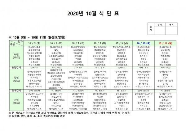 10월 둘째주 식단표 페이지 정보 작성자 은천노인복지회 작성일20-10-12 14:45 조회152,716회 댓글0건 관련링크 이전글 다음글 목록 답변 본문 . 이전글 다음글 목록 답변