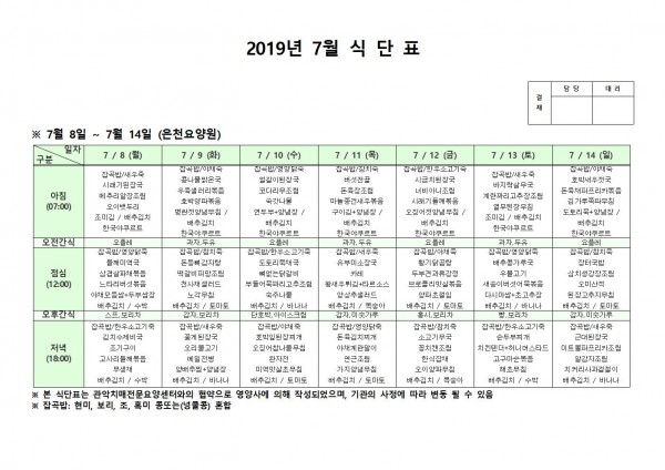 7월 둘째주 식단표 페이지 정보 작성자 은천노인복지회 작성일19-07-15 10:56 조회190,374회 댓글0건 관련링크 이전글 다음글 목록 답변 본문 7월 둘째주 식단표 이전글 다음글 목록 답변