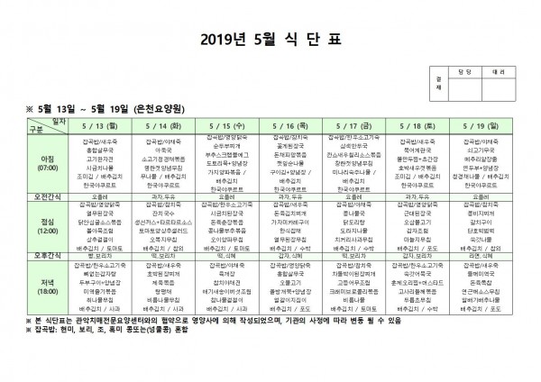5월 둘째주 식단표 페이지 정보 작성자 은천노인복지회 작성일19-05-20 11:59 조회195,344회 댓글0건 관련링크 이전글 다음글 목록 답변 본문 5월 둘째주 식단표 이전글 다음글 목록 답변