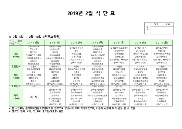 2월 첫째주 식단표 페이지 정보 작성자 은천노인복지회 작성일19-02-13 17:29 조회198,495회 댓글0건 관련링크 이전글 다음글 목록 답변 본문 2월 첫째주 식단표 이전글 다음글 목록 답변
