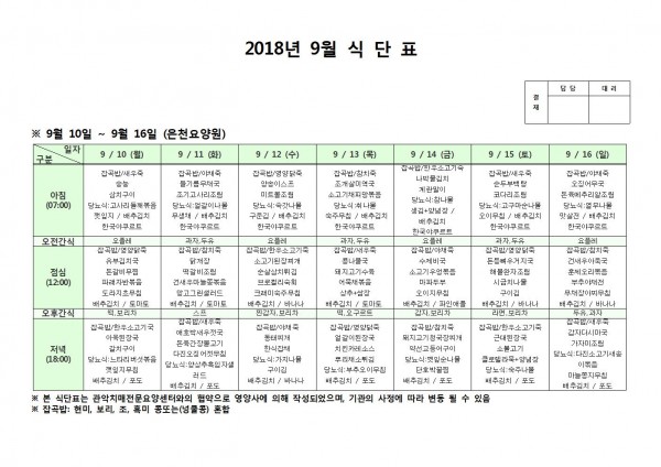 9월 둘째주 식단표 페이지 정보 작성자 은천노인복지회 작성일18-09-18 09:52 조회198,130회 댓글0건 관련링크 이전글 다음글 목록 답변 본문 9월 둘째주 식단표 이전글 다음글 목록 답변