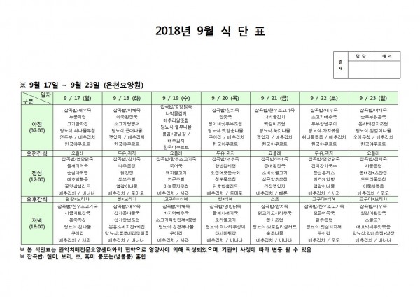 9월 셋째주 식단표 페이지 정보 작성자 은천노인복지회 작성일18-10-08 11:05 조회197,412회 댓글0건 관련링크 이전글 다음글 목록 답변 본문 9월 셋째주 식단표 이전글 다음글 목록 답변