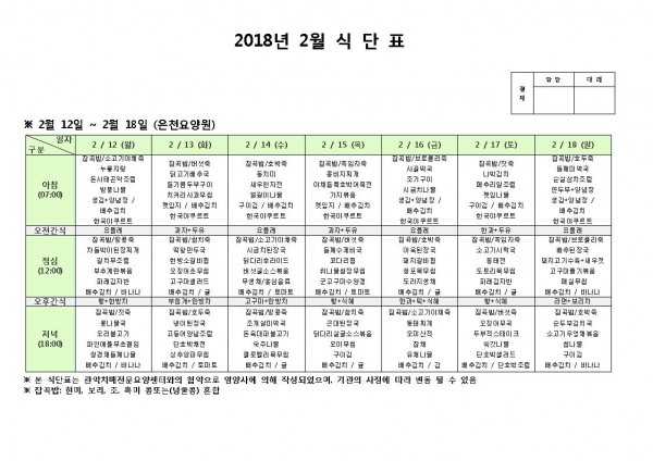 2월 둘째주 식단표 페이지 정보 작성자 은천노인복지회 작성일18-02-12 11:15 조회187,958회 댓글0건 관련링크 이전글 다음글 목록 답변 본문 2월 둘째주 식단표 이전글 다음글 목록 답변