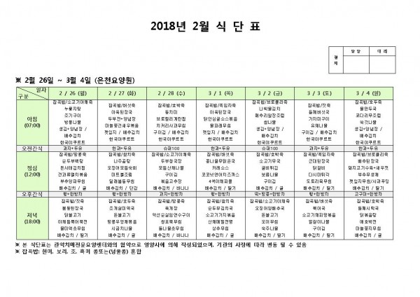 3월 첫째주 식단표 페이지 정보 작성자 은천노인복지회 작성일18-02-27 16:10 조회188,855회 댓글0건 관련링크 이전글 다음글 목록 답변 본문 3월 첫째주 식단표 이전글 다음글 목록 답변