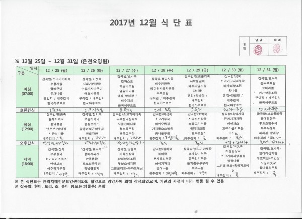 12월 다섯째주 식단표 페이지 정보 작성자 은천노인복지회 작성일17-12-26 11:49 조회184,481회 댓글0건 관련링크 이전글 다음글 목록 답변 본문 12월 다섯째주 식단표 이전글 다음글 목록 답변