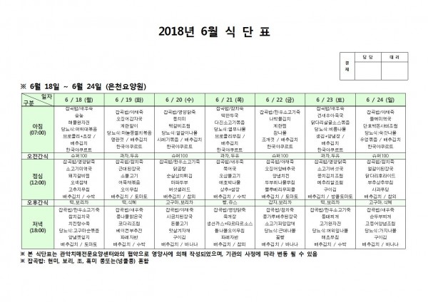 6월 넷째주 식단표 페이지 정보 작성자 은천노인복지회 작성일18-06-25 11:11 조회201,582회 댓글0건 관련링크 이전글 다음글 목록 답변 본문 6월 넷째주 식단표 이전글 다음글 목록 답변