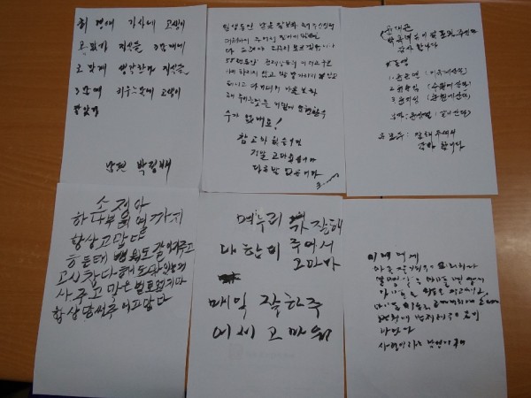서예교실(가족에게 편지쓰기) 페이지 정보 작성자 은천노인복지회 작성일18-08-28 16:22 조회36,409회 댓글0건 관련링크 이전글 다음글 목록 답변 본문 가족중 가장 고마운 사람에게 편지쓰기를 하였습니다. 붓펜으로 종이한장 가득 고마운 마음을 표현하시는 어르신들 모습입니다. 이전글 다음글 목록 답변