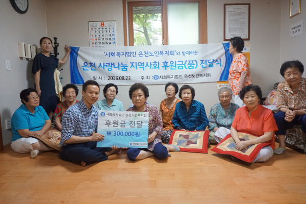 경로당 돕기 후원 페이지 정보 작성자 은천노인복지회 작성일17-01-16 16:39 조회36,811회 댓글0건 관련링크 이전글 다음글 목록 답변 본문 동대문 지역 열악한 경로당을 찾아서은천재가노인지원센터에서 후원금을 전달하였습니다.창방경로당, 전농3분회경로당, 방배경로당, 청량리현대경로당 이전글 다음글 목록 답변