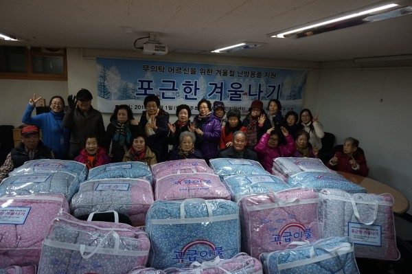 아름다운가게 이불후원 페이지 정보 작성자 은천노인복지회 작성일17-01-13 17:48 조회36,221회 댓글0건 관련링크 이전글 다음글 목록 답변 본문 아름다운가게 후원으로 이불을 어르신들께 전달하여 드렸습니다. 이전글 다음글 목록 답변