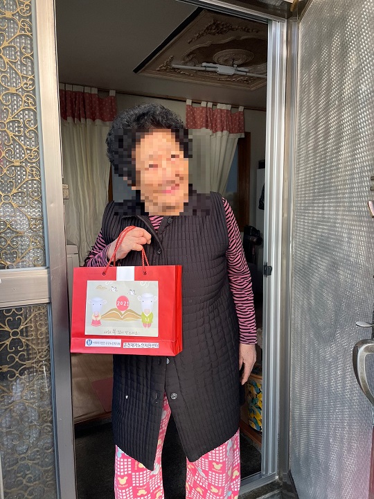 [재가노인지원센터] 설명절 선물지원서비스 페이지 정보 작성자 은천노인복지회 작성일21-02-26 09:42 조회23,186회 댓글0건 관련링크 이전글 다음글 목록 답변 본문 2021년 설 멸정을 맞이하여 어르신들을 찾아뵙고 선물을 전하면서 안부확인을 진행하였습니다. 이전글 다음글 목록 답변